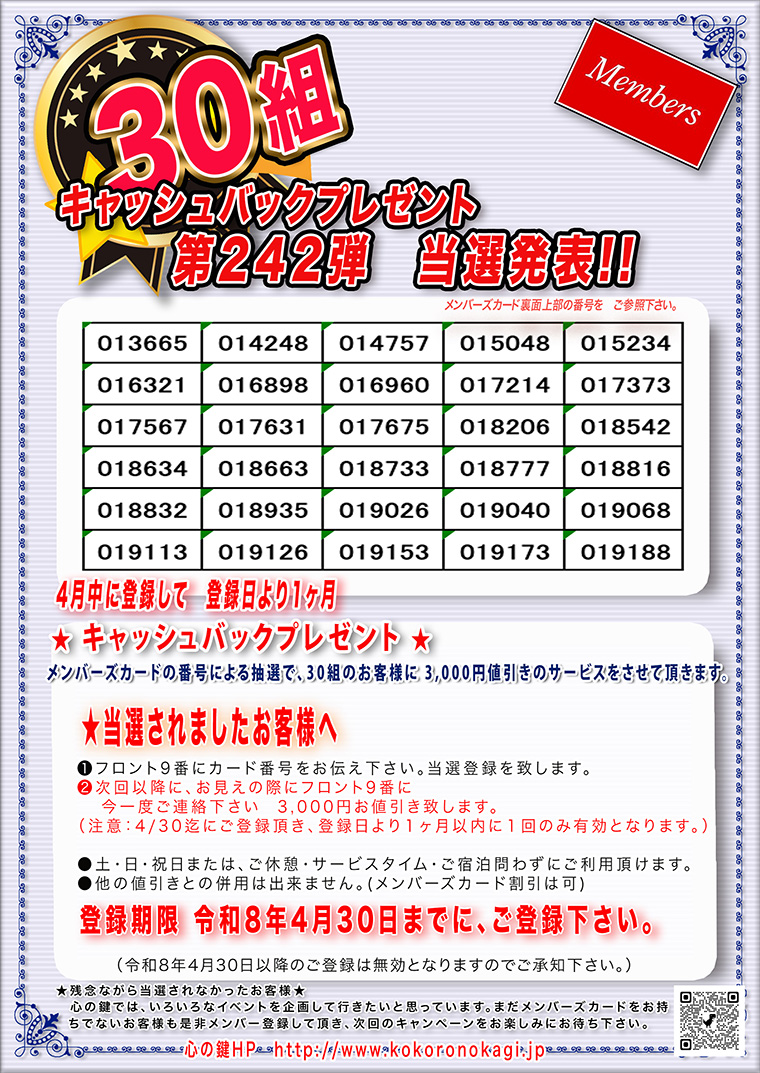 4月も30組のラッキーなお客様!!おめでとうございます。